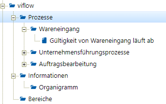 Der Knoten viflow wird über die viflow-Integration automatisch angelegt. Ebenso werden die Unterknoten Prozesse, Bereiche und Informationen automatisch angelegt.