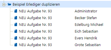 Mit der Funktion „Erlediger duplizieren“ können Sie eine einzelne Aufgabe für mehrere Erlediger kopieren.