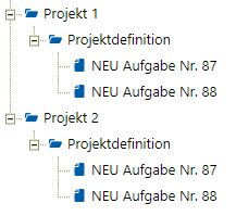 Ergebnis: Kopierte Aufgaben mit unterschiedlichen Erledigern: