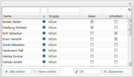 Mit der Vergabe eines Schreibrechts für ein Teammitglied erbt diese Person alle Funktionen, die einem Aufgabeninhaber zustehen! Seien Sie deshalb zurückhaltend mit der Vergabe von Schreibrechten!
