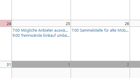 Wenn an einem Tag mehr als eine Aufgabe zu erledigen ist, erfolgt eine Reihung der Aufgaben untereinander. Die angegebene Uhrzeit ist aus Gründen der Einordnung im Kalender erforderlich, jedoch ohne Relevanz.