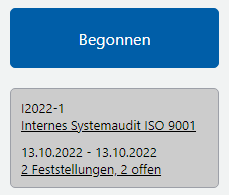Die Auditübersicht zeigt auf einen Blick an, wie viele Feststellungen es zu einem Audit gibt, und wie viele davon noch offen sind.