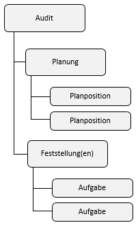 Ein Audit kann beliebig viele Feststellungen beinhalten, eine Feststellung beliebig viele Aufgaben.