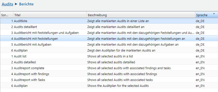 Um die Auswahlliste der Berichte aufzurufen, klicken Sie auf: |
