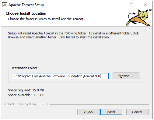 Führen Sie die Datei apache-tomcat-8.5.28.exe aus dem Verzeichnis Tomcat 9.0.46 aus.