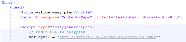 Passen Sie in der Datei easyplan.html im Verzeichnis viflow Integration\AddOns\easyplan den Servernamen an.