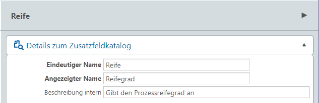 Legen Sie hier einen eindeutigen Namen für den Zusatzfeldkatalog an. |