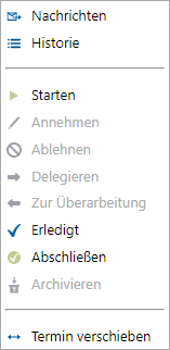 Im Kontextmenü werden die für den markierten Datensatz möglichen Funktionen angezeigt. Nicht mögliche Funktionen werden deaktiviert und in hellgrau dargestellt.
