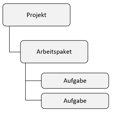 Ein Projekt kann beliebig viele Arbeitspakete beinhalten, ein Arbeitspaket beliebig viele Aufgaben.