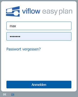 Wenn Sie sich das erste Mal bei viflow easy plan anmelden, lautet Ihr Standardpasswort „easyplan“.