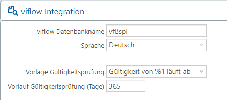 Die viflow Integration muss in Administration 🡪 Konfiguration 🡪 viflow Integration eingerichtet werden.