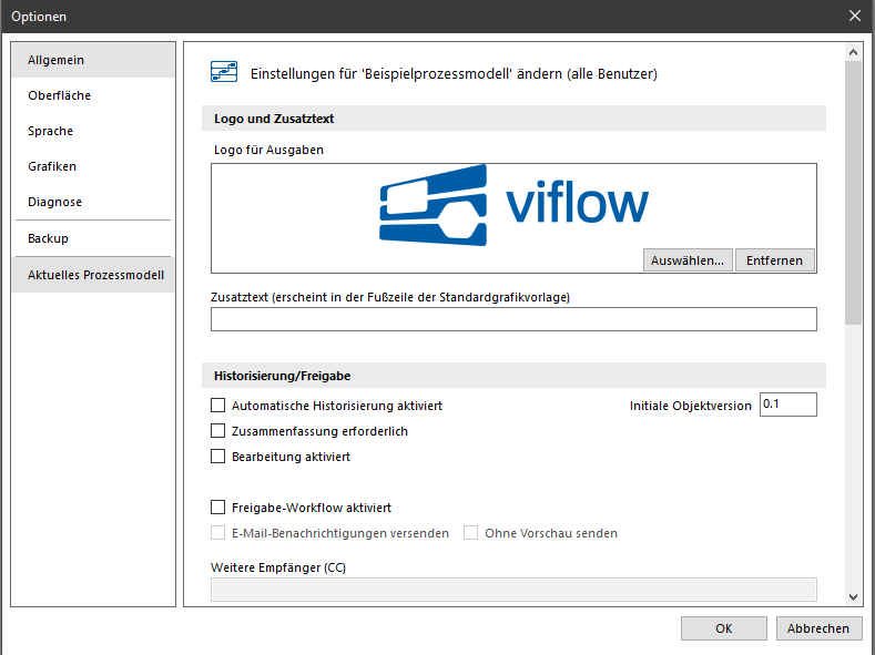 Um den Workflow für Prüfung und Freigabe zu verwenden, muss der Freigabe Workflow in viflow deaktiviert werden.