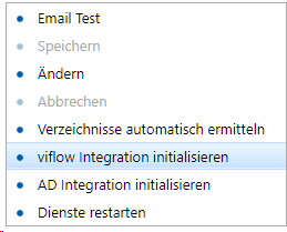 Danach führen Sie in der Maske „Konfiguration“ die Funktion viflow Integration initialisieren im Kontextmenü aus.